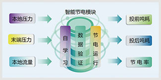 智能節(jié)電通過專利技術(shù),根據(jù)供水流量變化,自動優(yōu)化供水壓力, 在保障最遠(最不利)用戶用水的基礎(chǔ)上,最大限度降低 出口供水壓力,降低能耗,實現(xiàn)精準節(jié)能。 |