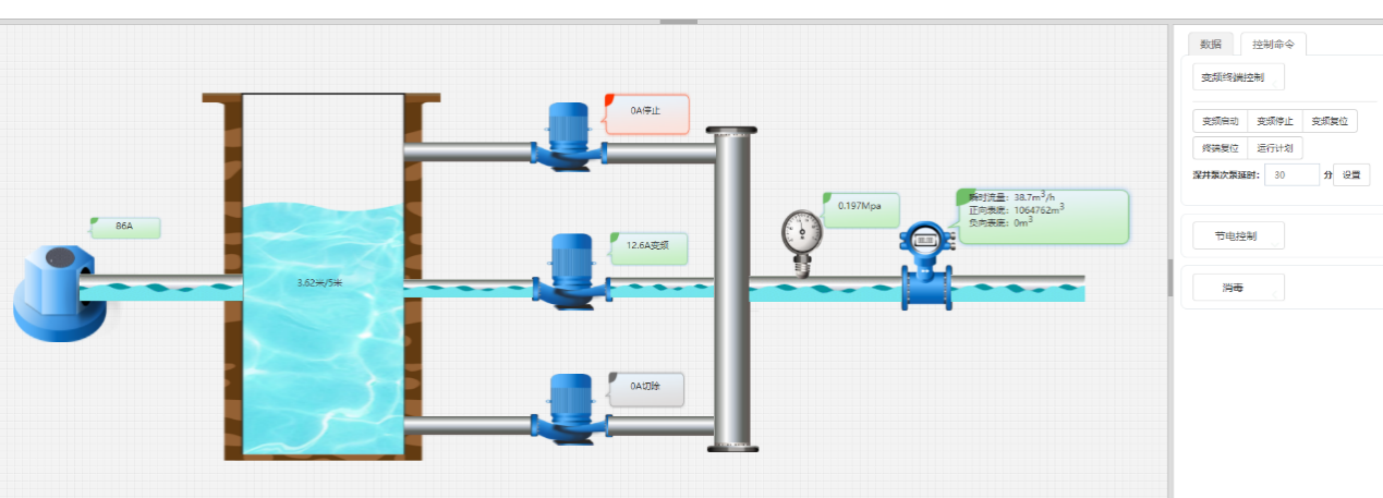 工藝圖直觀顯示供水站設(shè)備的運(yùn)行狀況;