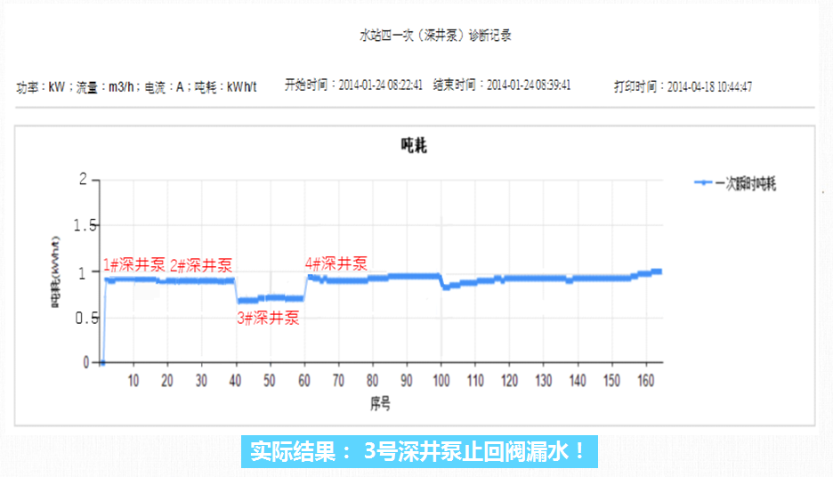 噸水耗電考核:每天計(jì)算各供水站噸水耗電,噸水耗電異常及時(shí)提醒,查明原因,及時(shí)維修。通過考核機(jī)制,降低能耗,增加效益。